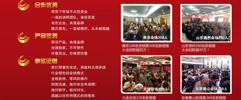 天津富日達成立于2002年,企業(yè)具有起點高,發(fā)展速度快的四高特點“高科技產(chǎn)品、高素質(zhì)團隊、高品質(zhì)服務(wù)、高成長模式”,在全國設(shè)有三家分公司,現(xiàn)在銷售團隊一百余人,在天津市內(nèi)建立了服務(wù)全國的營運系統(tǒng)?偛肯略O(shè)八大職能部門,為經(jīng)銷商的營運、營銷提供強力扶助,在合作共羸的世紀里我們共享精彩。 前沿產(chǎn)品,央視品牌 全國獨家,不可替代 價值突出,價格更優(yōu)惠 帶貨下市場不占您資金 一流的講師團隊,身經(jīng)百戰(zhàn) 名優(yōu)企業(yè), 央視品牌 模式領(lǐng)先,一直被模仿,從未被超越 我們用事實說話,用贏利兌現(xiàn)承諾 行業(yè)領(lǐng)先的會銷模式 全程扶持,零風(fēng)險操作 回款迅速,絕對安全有保障! 絕對數(shù)字,絕對對比,超越以往任何模式的回報率 放企業(yè)活動圖片 |