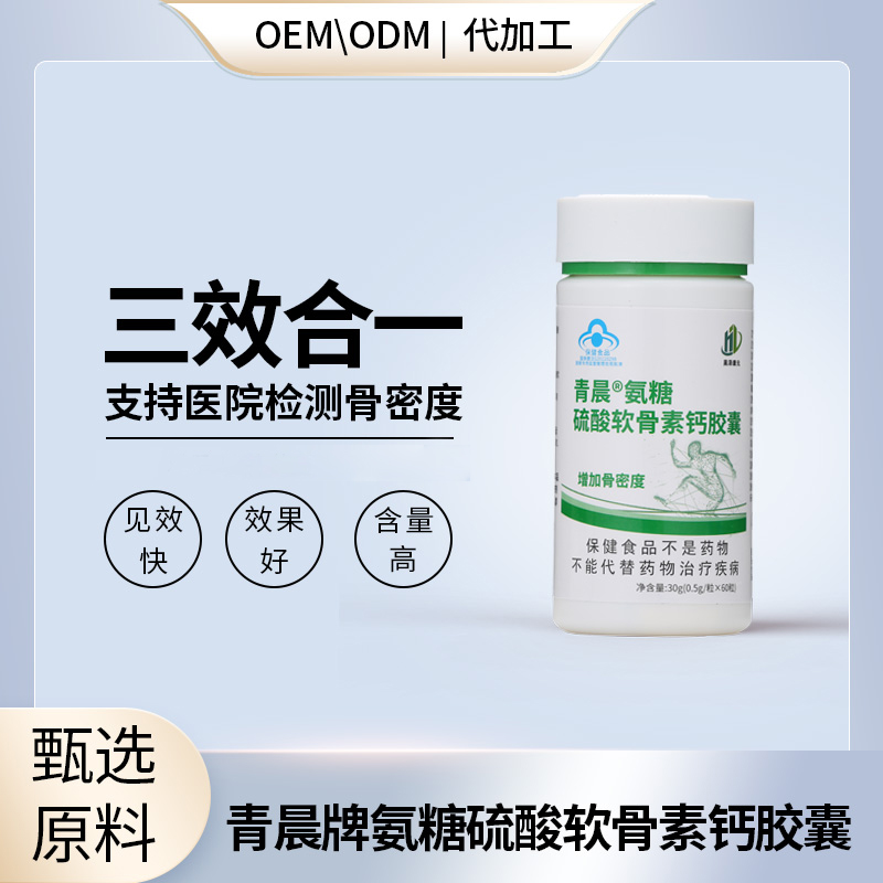 會銷熱門產(chǎn)品貼牌定制青晨牌氨糖硫酸軟骨素鈣膠囊oem代加工批發(fā)供貨大包藍帽