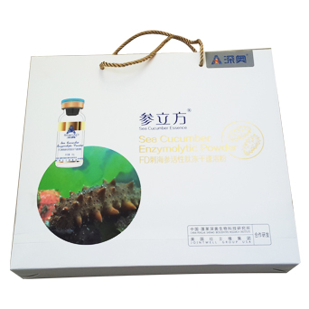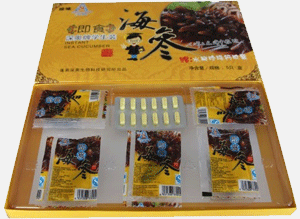 “成人裝即食海參”,每盒贈送一板“深奧生物“研制的“海參腸卵膠囊12粒/板”。