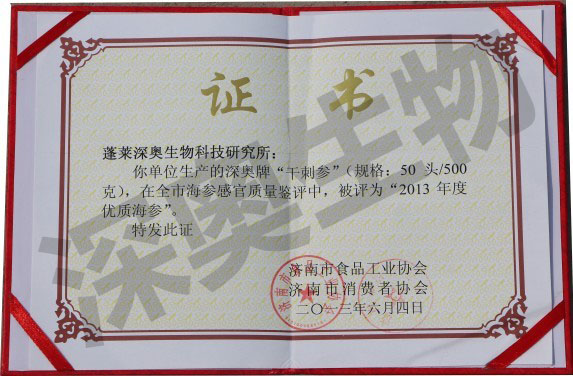 “深奧牌淡干海參”產(chǎn)自蓬萊渤海海域的純野生海參,經(jīng)現(xiàn)代高科技無鹽脫水、低溫干燥技術(shù)精制而成。