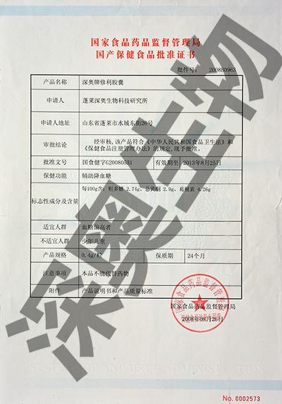“深奧牌修盛膠囊”是以西洋參粉、海參凍干粉、葡萄籽提取物為主要原料制成的保健食品,經(jīng)動物功能試驗證明,具有增強免疫力的保健功能。